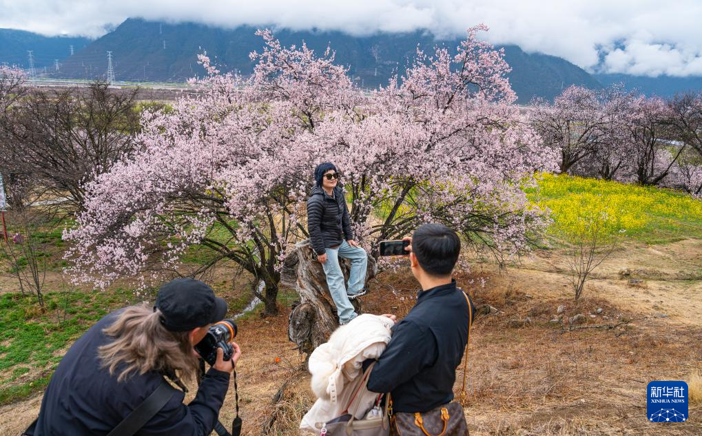 3月31日,游客在林芝市巴宜區(qū)嘎拉村拍照留念。新華社記者 丁增尼達 攝