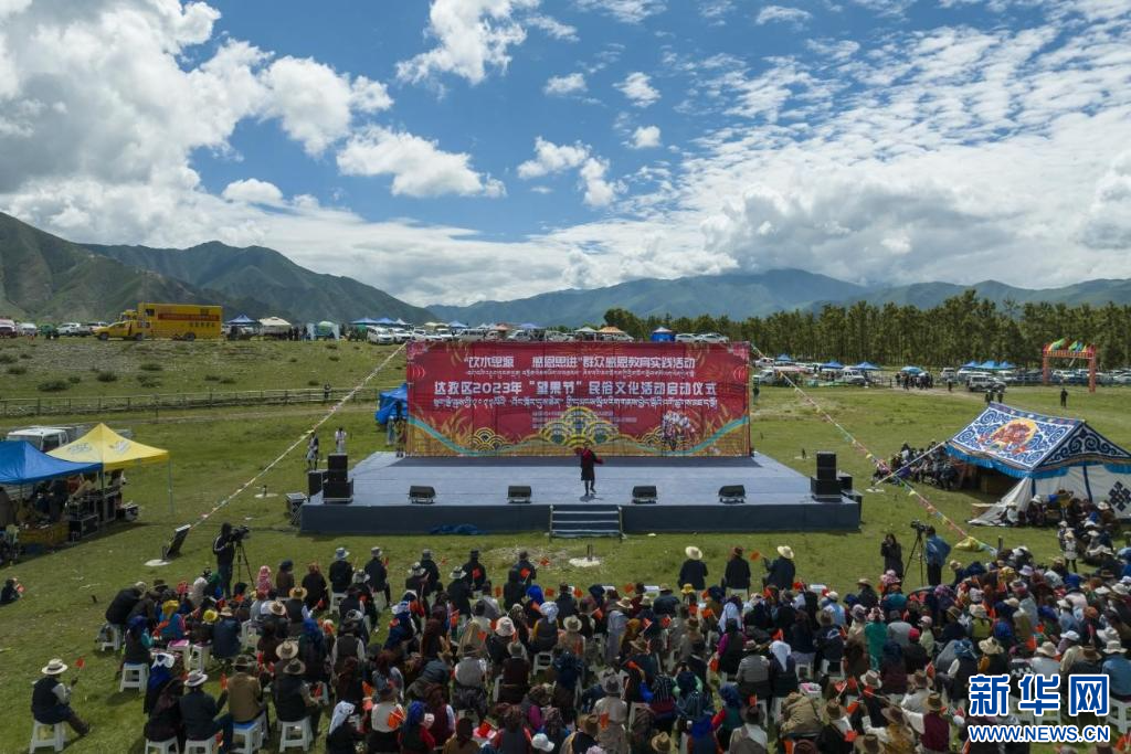 圖為達(dá)孜區(qū)2023年“望果節(jié)”民俗文化活動(dòng)啟動(dòng)儀式現(xiàn)場(chǎng)(7月28日攝)。新華網(wǎng)發(fā) 司秦菱 攝
