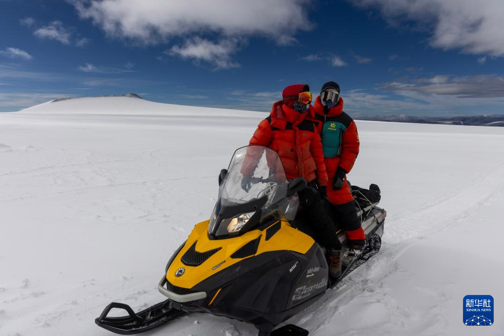 9月12日,科考隊員在雪地摩托上商量前往其他作業點的路線。新華社記者 姜帆 攝 ??