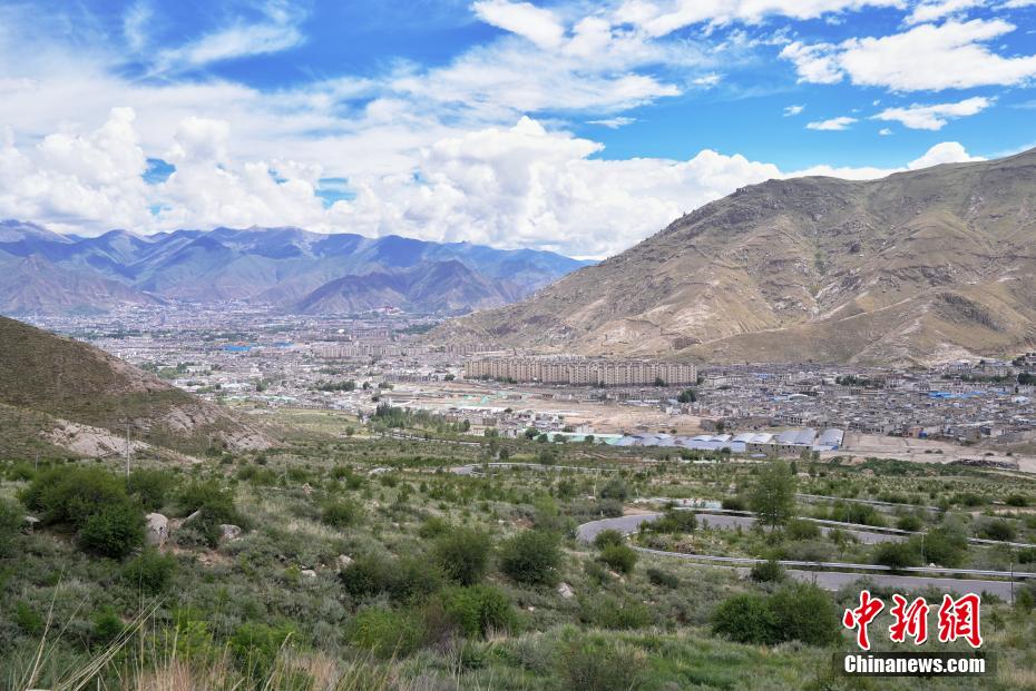 7月16日,從西藏拉薩娘熱溝俯瞰,南北山的綠色植被環抱拉薩城區。據了解,拉薩南北山綠化工程于2021年啟動,東起墨竹工卡縣尼瑪江熱鄉,西至曲水縣茶巴拉鄉,東西綿延近200公里,計劃完成國土綠化面積206.72萬畝,助力拉薩成為生態宜居的高原首府城市。中新社記者 張祥毅 攝