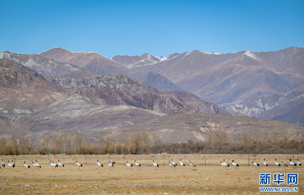 這是11月26日在西藏拉薩市林周縣境內拍攝的黑頸鶴。新華網 旦增努布 攝