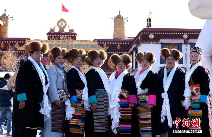 12月1日,西藏拉薩的婦女們盛裝來到拉薩大昭寺廣場,迎接“仙女節”到來。“仙女節”即吉祥天母節,藏語稱“白來日追”。圖為拉薩婦女盛裝在大昭寺廣場拍照。中新社記者 李林 攝