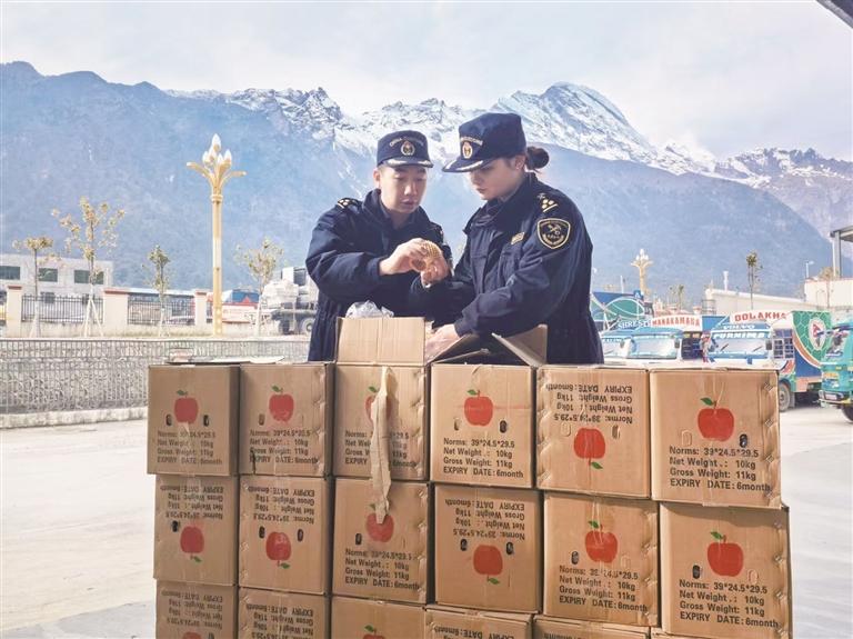 拉薩海關關員監管驗放出口農產品。圖由拉薩海關提供