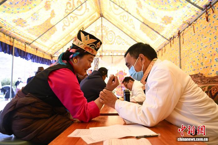 圖為達普天文觀測臺年度觀測活動現場,西藏自治區藏醫院的專家為村民免費義診。貢嘎來松 攝