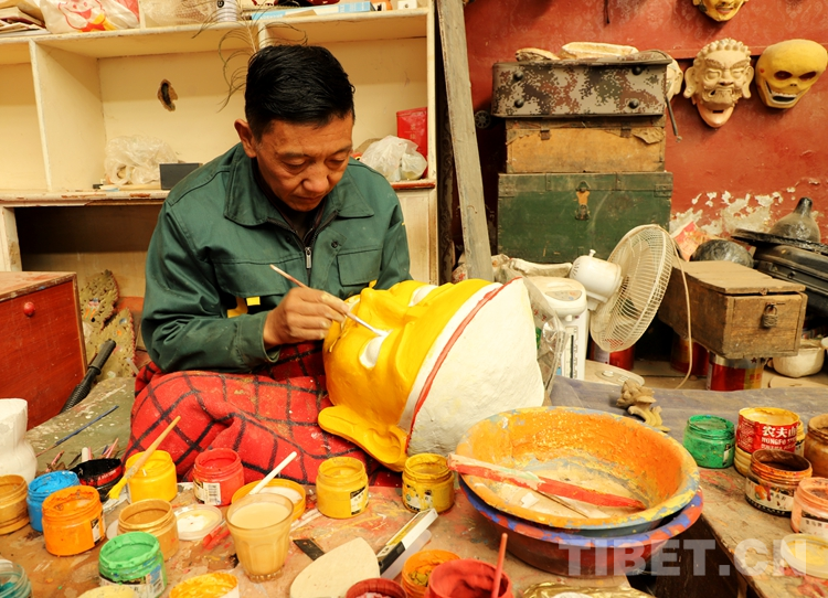 中國西藏網訊 一縷冬陽照進西藏自治區拉薩市的一所庭院,溫暖著院子里的一切,院內數名工匠正聚精會神地制作傳統藏式面具。