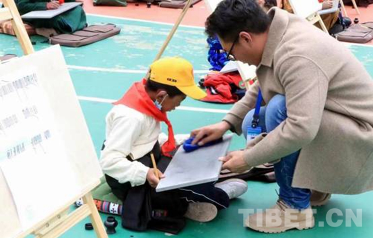 圖為西藏自治區那曲市比如縣羊秀鄉的學生正在創作美術作品 攝影:米瑪旺久