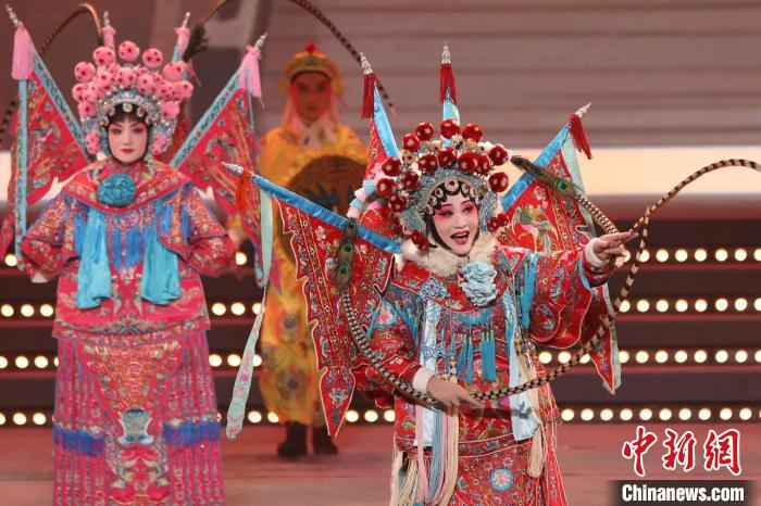 9月10日晚,2024江蘇中秋戲曲晚會在江蘇廣電荔枝大劇院上演,晚會緊扣“中秋”和“戲曲”兩大元素,將傳統節日內涵與戲曲藝術融為一體,戲曲界各劇種名家陳少云、趙志剛、竺小招、周東亮、李奕潔、陳澄、李曉旭、施夏明等“梅花獎”“紫金文化獎章”“文華表演獎”獲得者輪番登臺,與近年來涌現出的優秀青年演員同臺演出,凸顯戲曲文化的傳承與創新,為觀眾帶來一個流光溢彩的戲曲之夜。圖為“梅花獎”得主許亞玲(右)表演淮海戲《樊梨花點兵》選段。 中新社記者 泱波 攝