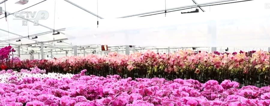 在安徽合肥市肥西縣的鮮花種植智能溫室里,各色蝴蝶蘭競相綻放,花株錯落有致。工作人員正忙著把鮮花打包裝上車,發往各地。