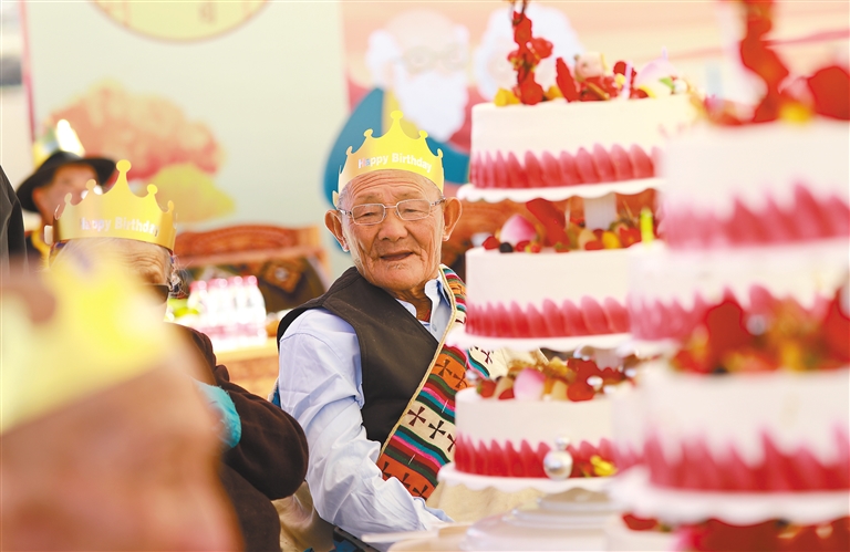 圖為拉薩市墨竹工卡縣民政局和退役軍人事務局舉行“我們的節日·重陽”主題活動,現場為老人們集體過生日。記者 唐斌 通訊員 洛克 攝