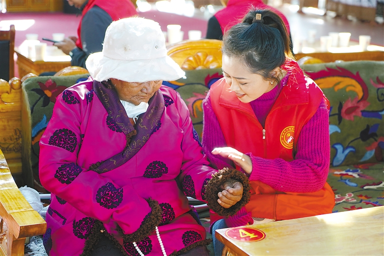 圖為那曲市索縣新時代文明實踐中心為特困人員集中供養服務中心的老人送去關心和關愛。記者 曲珍 通訊員 王霖 攝