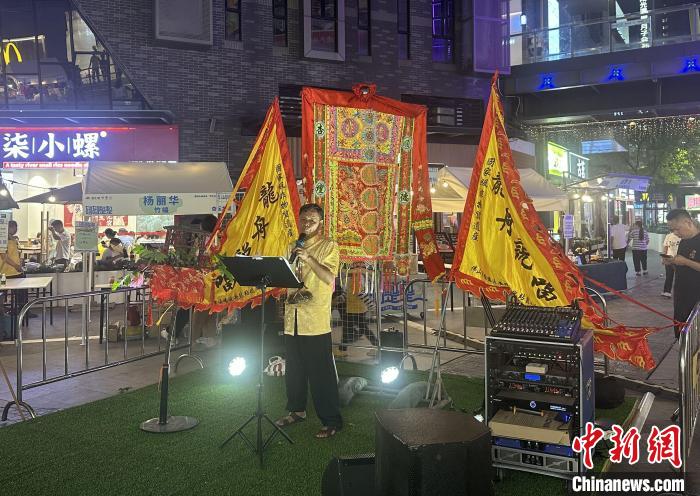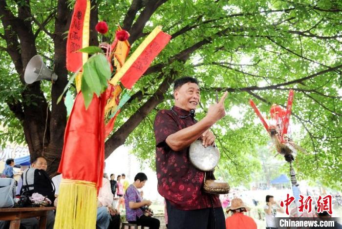 5月4日晚,龍舟說唱代表性傳承人梁章來開展演出。中新社記者 程景偉 攝