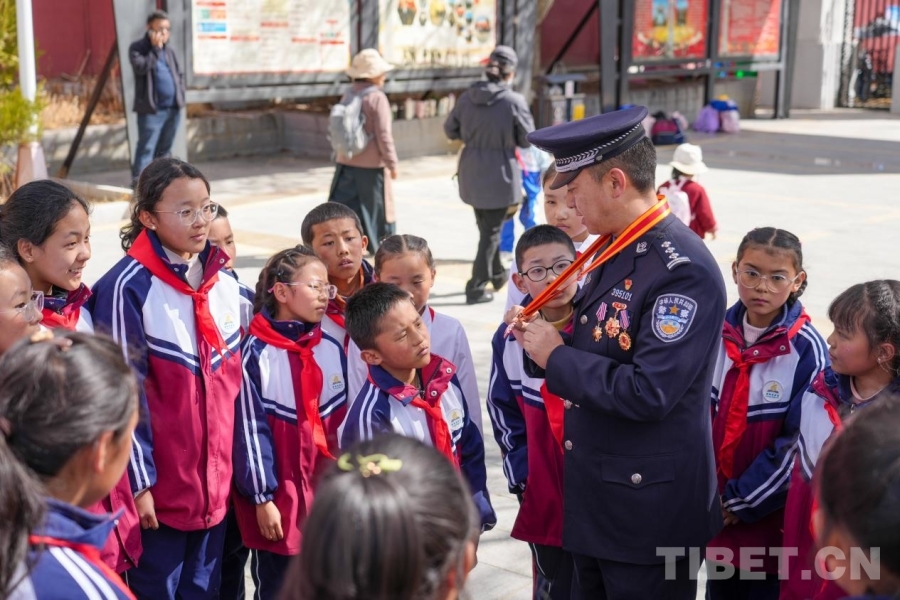 西藏日喀則邊境管理支隊(duì)民警現(xiàn)場(chǎng)為少先隊(duì)員宣講英烈事跡