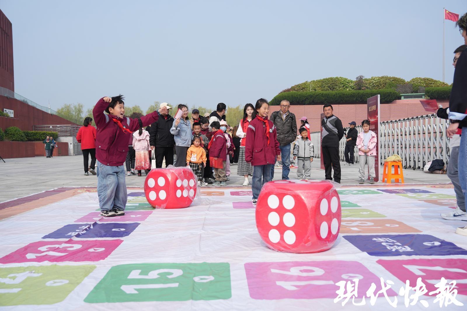 南京的渡江勝利紀念館也熱鬧非凡。江蘇、浙江、上海、安徽四地的14家渡江戰役紀念館(地)合作聯盟單位,以及南京地區部分紅色場館和社會團體,共設近20個紅色科普、文博宣傳與文創展位。字影追蹤戰、冰壺突圍記、沙包投擲戰……孩子們玩得不亦樂乎。