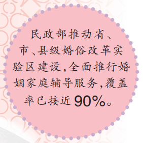 當前,民政部先后分兩批確定了32個全國婚俗改革實驗區,以期通過創新婚育文化載體,教育引導青年樹立正確的婚戀觀、家庭觀,助力婚姻家庭幸福穩定。