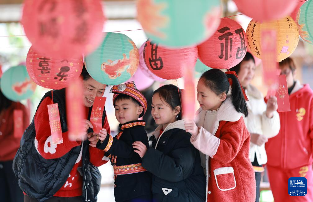2月10日,人們在廣西桂林市靈川縣蘭田瑤族鄉(xiāng)西江寨參與猜燈謎活動(dòng)。