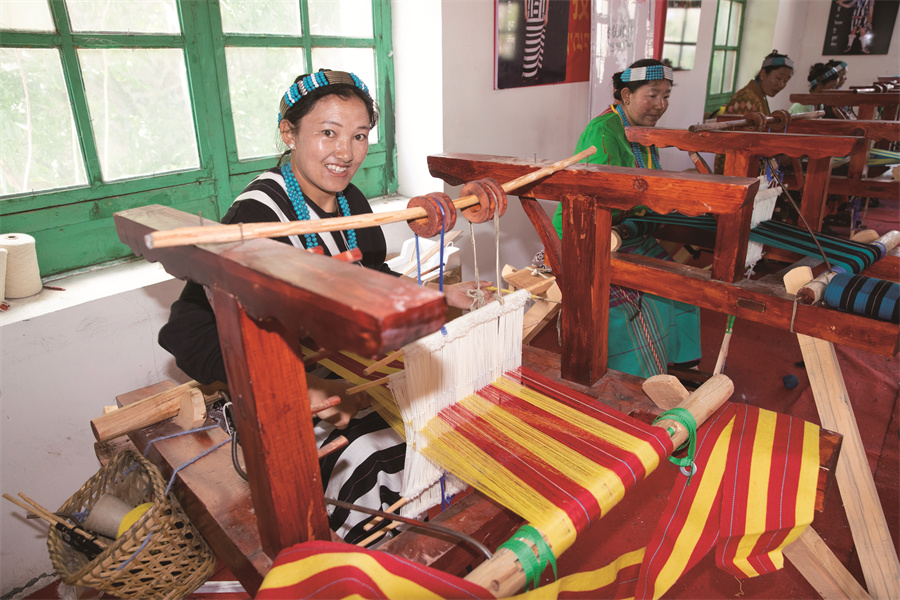 山南市珞巴族婦女正在編織國家級非遺“珞巴服飾”。次仁龍布 攝