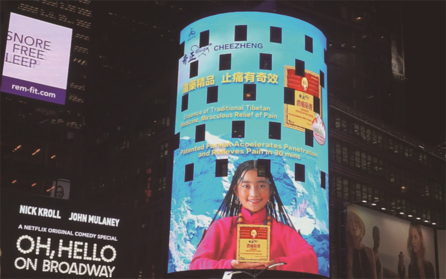 奇正藏藥廣告登上美國紐約時代廣場納斯達克大屏幕,向世界展示藏醫藥。受訪者供圖