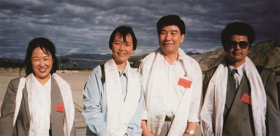 雷菊芳(左二)1995年隨中國民營科技實業家光彩事業赴藏考察團進藏考察。受訪者供圖