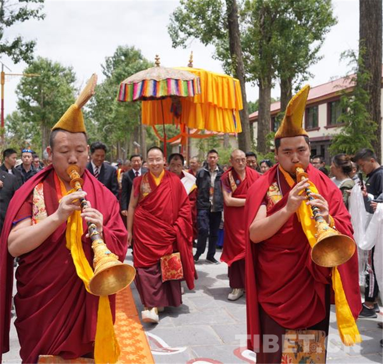 來自拉薩的僧眾代表和信教群眾代表,帶著虔誠和喜悅的心情,滿懷期待十一世班禪的到來。當(dāng)大院內(nèi)響起法號聲時,早已在此等候的僧俗信教群眾紛紛翹首踮足,一睹十一世班禪的風(fēng)采。