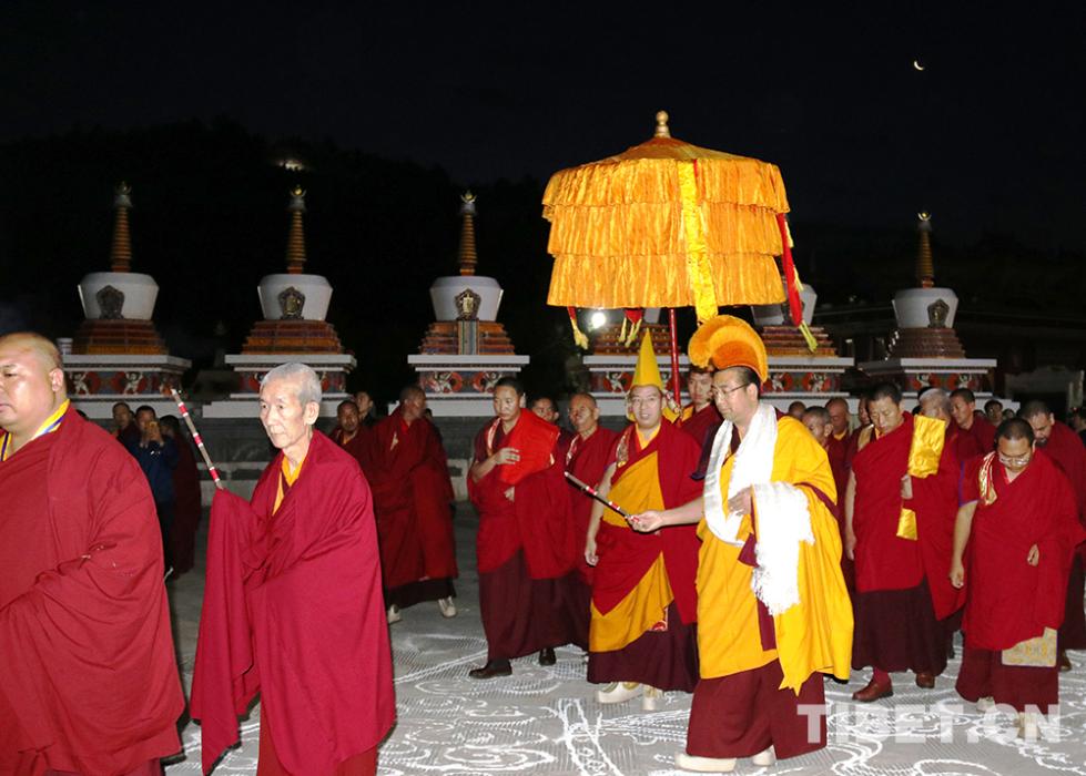 塔爾寺僧人向班禪大師敬獻曼扎。