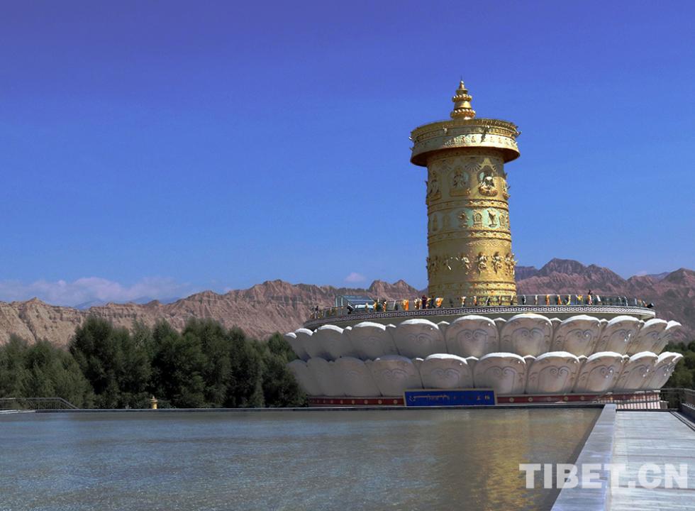 最后,班禪大師一行來到位于黃河岸邊的“中華福運輪”,“中華福運輪”轉經輪主體高42米,于2012年獲頒吉尼斯世界紀錄。“中華福運輪”坐北向南,由黃河民俗博物館、倒影池、轉經塔三部分組成。班禪大師一行,背對著翻騰著青色波濤的黃河坐下,面對著“中華福運輪”,班禪帶領僧眾念誦祈愿經文,祈禱世界和平、國泰民安、五谷豐登、眾生幸福。(中國西藏網文、圖/袁星宇)