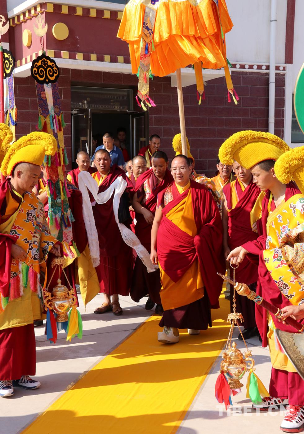 7月21日,清晨5點多,車隊來到位于西寧市湟中縣靜謐的塔爾寺。只見一位僧人穿著絳紅色的僧裝,走下車,這時早早迎候在塔爾寺門口的僧人儀仗隊,鼓樂齊鳴,隆重歡迎這位重要的僧人——班禪額爾德尼o確吉杰布。