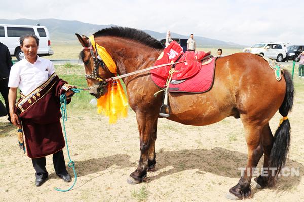 這一次,大家又在十一世班禪的身上看到了那位愛馬前世的影子。十一世班禪牽著馬漫步在湖邊,突然兩腳一夾,策動韁繩,隨著馬飛奔起來。那是一匹有名的青海驄,膘肥體健、高大英武。一時間好馬配青年、湖光配絳衣,一人一馬在湖邊奔馳。