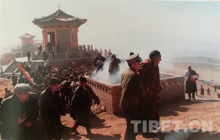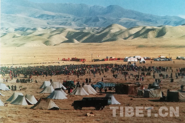 圖為十世班禪大師在幸福灘上誦經(jīng)祈禱,祝愿海南州昌隆、繁榮,各族人民幸福、吉祥。