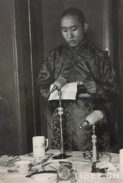 圖為1955年3月9日 十世班禪大師在國務院全體會議第七次會議上發言。翻拍自《班禪額爾德尼評傳》