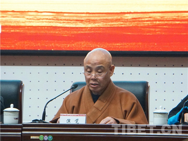 演覺法師總結了十世班禪大師的功績,他在發言中表示,要將對大師的懷念與學習轉化為推動藏傳佛教事業健康發展的動力,轉化為維護民族團結、祖國統一的堅定行動,轉化為莊嚴國土、利樂有情的篤實愿行。