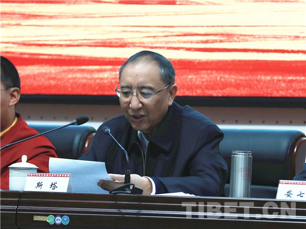 會議由中國藏學研究中心總干事鄭堆主持,中央統戰部斯塔同志、十一世班禪、中國佛教協會副會長演覺、中國佛教協會副會長祜巴等傣等先后講話。