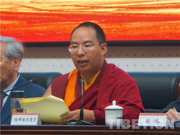 中國藏語系高級佛學院副院長土多申格、中央民族大學教授班班多杰、中國藏學研究中心研究員張云等先后發言。各位學者專家分別就十世班禪大師的榜樣精神、從十世班禪大師轉世看活佛轉世的歷史定制、兩代班禪與青海師范大學間的特殊因緣、從扎什倫布寺民主管理試點等多角度多層次深入研討大師愛國愛教思想的博大精深,追思他功德業績的偉大。