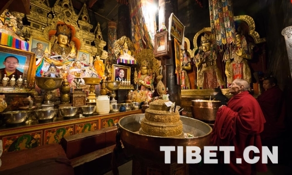 圖為信教群眾在十世班禪大師靈塔殿內祈禱。攝影:趙耀?! ?/p>