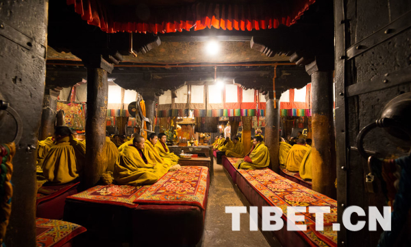 中國西藏網訊 1月28日,西藏自治區日喀則市歷代班禪駐錫地扎什倫布寺僧眾云集,誦經聲響徹大殿,隆重舉行十世班禪大師圓寂30周年紀念法會。(中國西藏網 記者/趙耀 索朗加措)