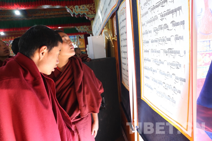 此次活動共征集書法作品80余幅,包含藏文、梵文、漢文、英文,其中藏文書法當中又有烏金和烏梅體、草書體和古藏文體等多種書法類型,不僅展現了藏文書法精美多樣的字體和悠久歷史,而且表達了全寺僧眾深切緬懷大師的至真感情和銘記大師教誨,積極發揚藏傳佛教愛國愛教優良傳統的堅定信心。(中國西藏網 記者/索朗加措、趙耀 圖片由扎什倫布寺寺管會提供)