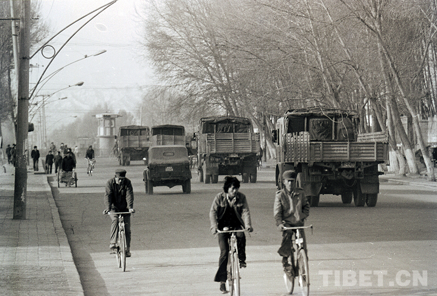 青藏公路線上,被稱為“汽車城”的格爾木市街道(唐召明1987年攝)