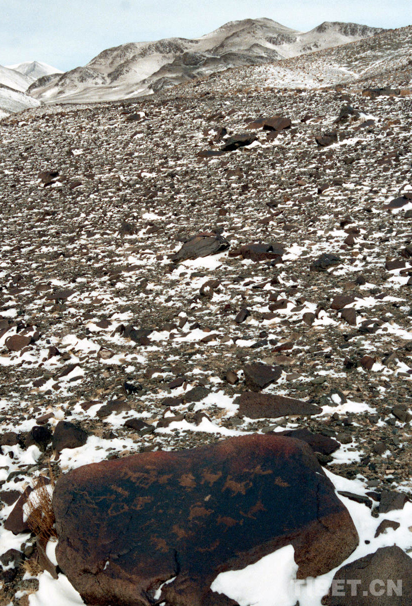 圖為加林山俄東溝一塊有巖畫(huà)的大石頭(唐召明2001年攝)