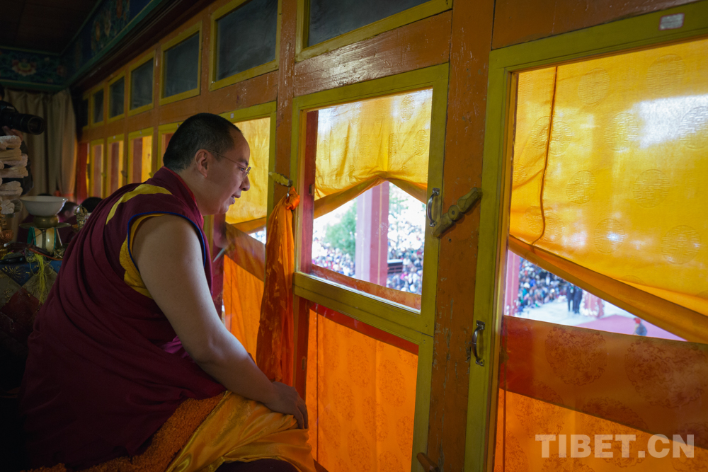近日返回駐錫地日喀則市扎什倫布寺的全國政協常委、中國佛教協會副會長、中國佛教協會西藏分會會長班禪額爾德尼確吉杰布興致勃勃地觀看了扎什倫布寺僧人的“跳神”表演。