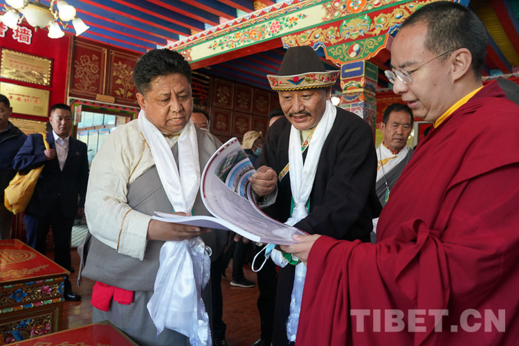在開展一系列宗教活動、倡導藏傳佛教與社會主義社會相適應的同時,十一世班禪還深入西藏社會各個領域進行深入調研,親身感受了西藏自治區的發展變化,看到了西藏自治區決勝脫貧攻堅的成果、實施鄉村振興戰略的成效和全面建成小康社會的成就。在參觀西藏自治區高新科技和農牧區新興產業時,十一世班禪衷心贊許道:“科技的發展誰也阻擋不了,只有占領了技術高地,未來才能有更多、更大的優勢。”林芝市波密縣紅樓愛國主義紅色教育基地展示的歷史記憶令十一世班禪深受感動,“紅樓里這些感人的故事雖然發生在過去,但今天依然是我們的精神食糧。近70年前,在中國共產黨的領導下,實現了西藏和平解放;60余年前,百萬農奴翻身成為國家的主人;今天我們在以習近平同志為核心的黨中央領導下,也一定能夠在決戰決勝脫貧攻堅、全面建成小康社會的工作中不斷前進,讓老百姓過上更加幸福的生活。”