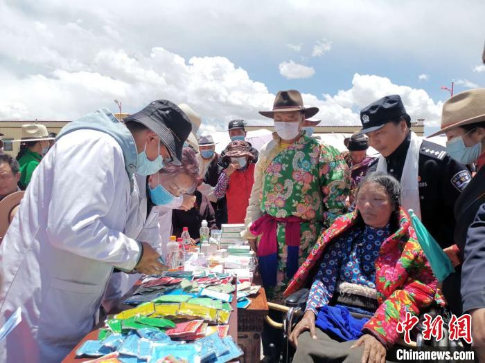 圖為活動現場發放各類藥品。安多縣委宣傳部 供圖