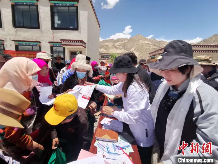 圖為各行業新時代文明實踐志愿者們熱情耐心地講解憲法、醫療保障、交通安全、文化衛生、扶貧政策、消防知識、應急處理等法律法規常識。安多縣委宣傳部 供圖