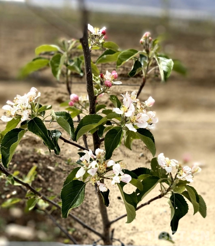 圖為西藏自治區山南市貢嘎縣昌果鄉團結新村矮化蘋果基地種植的矮化蘋果已開花 圖片由西藏自治區山南市貢嘎縣昌果鄉團結新村提供