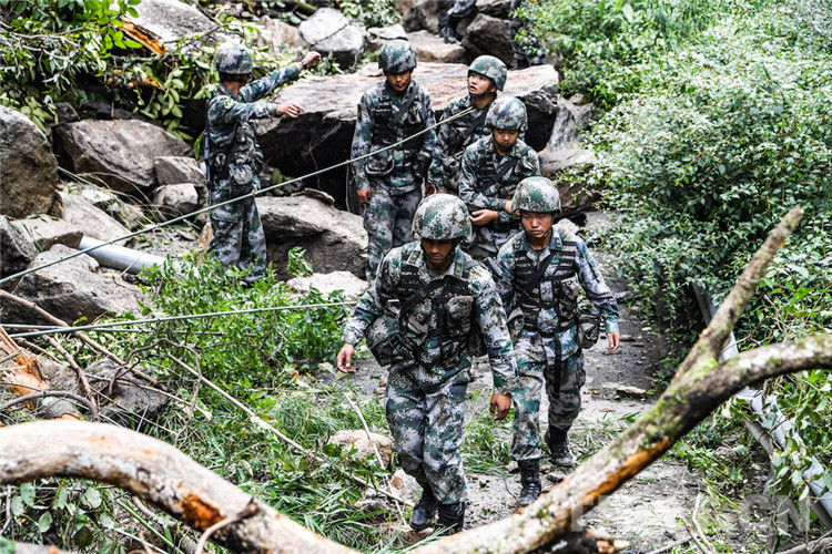 圖為巴桑和戰友們通過塌方亂石堆 攝影:徐治國