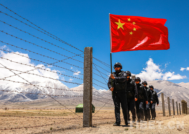 圖為陳塘邊境派出所民警和夏爾巴群眾一同升國旗