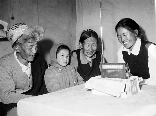 1978年 拉薩城關區東方紅居委會強巴群宗一家在收聽有關十一屆三中全會的廣播消息。