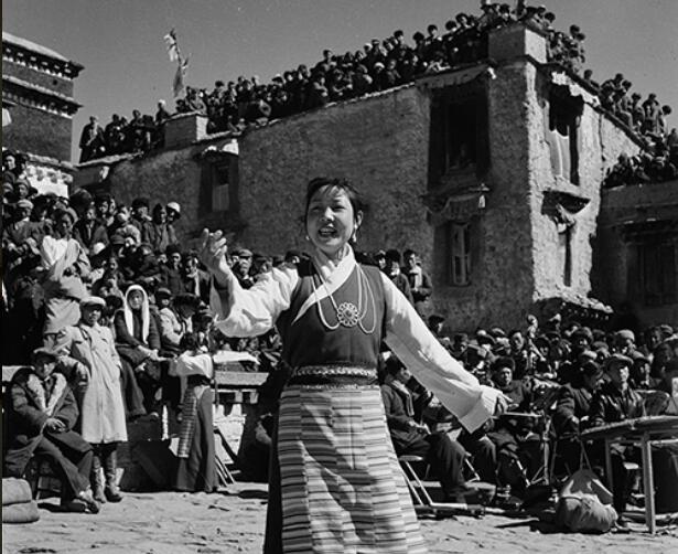 1959年,西藏歌舞團(tuán)演員在拉薩為民眾歌唱。陳宗烈攝
