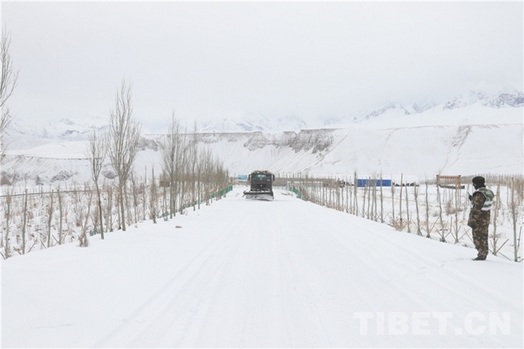 在持續降雪的西藏自治區西部地區,武警官兵在確保道路交通不中斷的情況下,通過連續2天奮戰,積雪路段冰雪已全部被清除,有效確保了過往司乘人員安全通行。(中國西藏網 通訊員/陸文凱 董尼么太)
