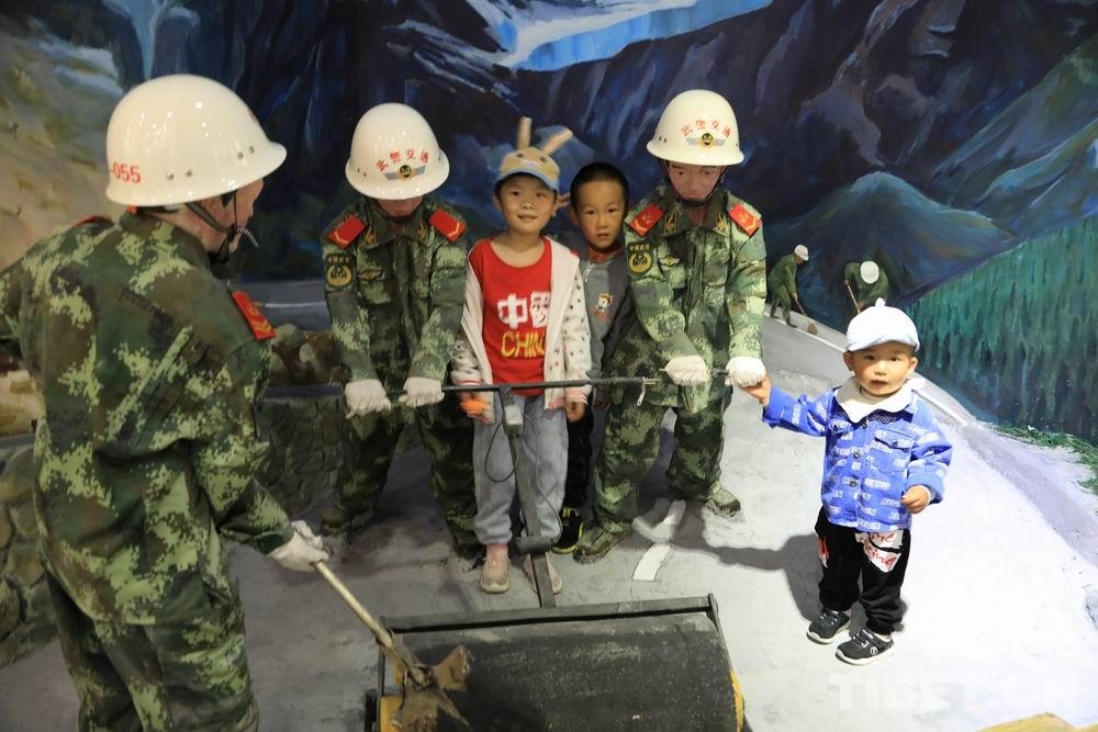 圖為軍娃與官兵養護道路模型合影 攝影:陸文凱