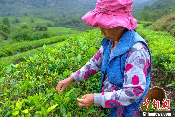 圖為正在采茶的茶農(5月18日攝)。新華網 雪珍 攝