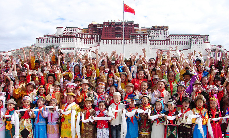 圖為拉薩市第一小學60年校慶時,全校學生盛裝在布達拉宮廣場合影留念。(資料圖片) 記者 旦增西旦 攝